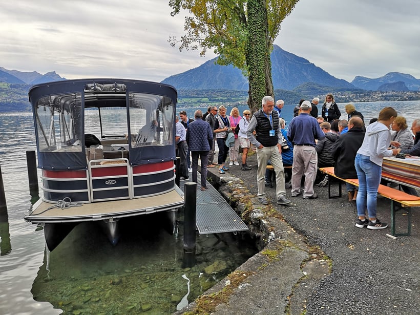 Weitertransport auf Ledischiffe. Früher übte hier einer der letzten Berufsfischer am Thunersee sein herausforderndes Handwerk aus. Er bietet Ihnen ein Glas Wein und ein